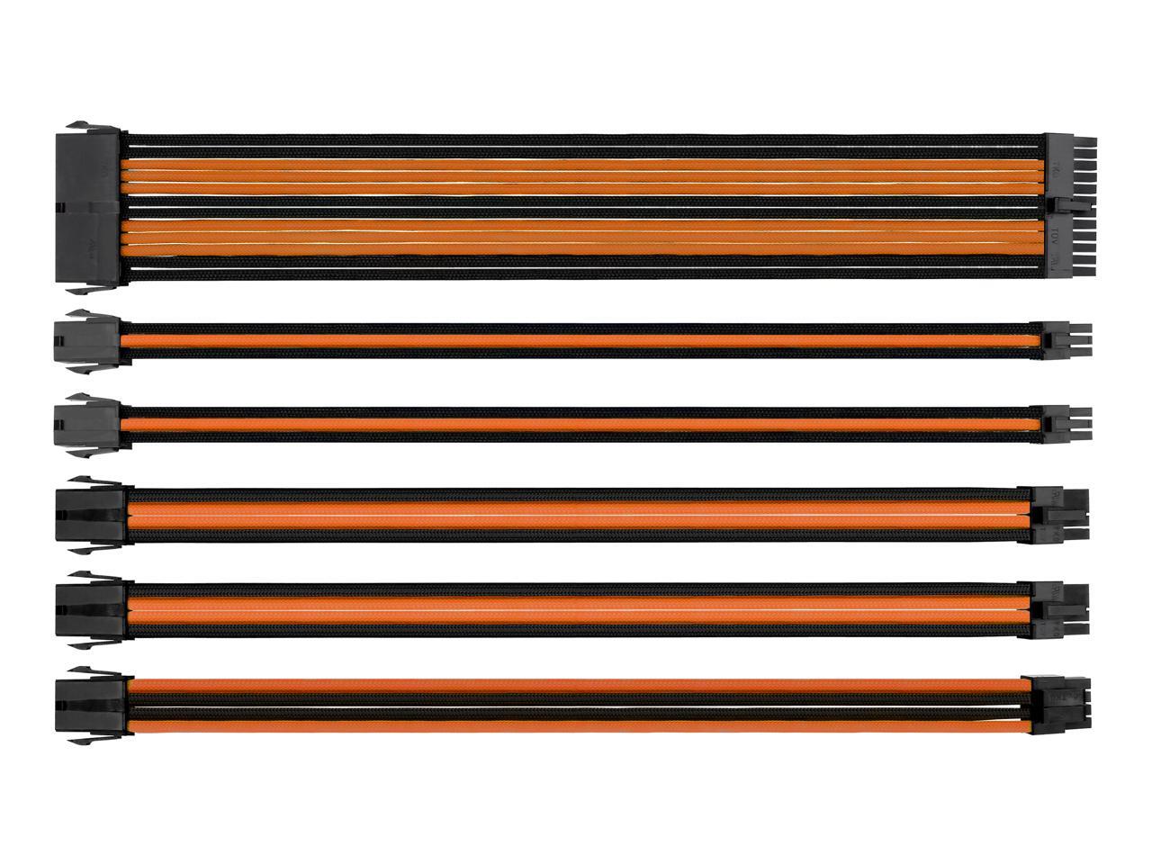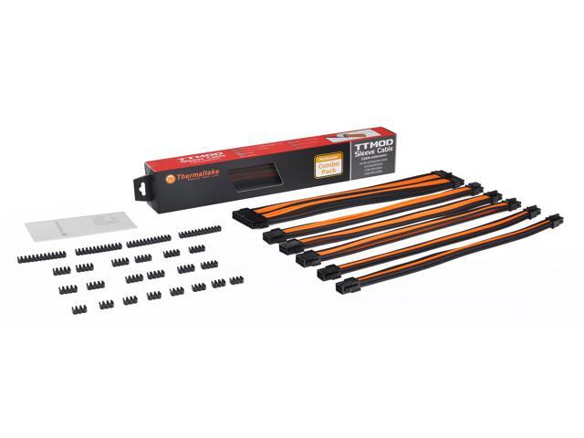 Thermaltake AC-036-CN1NAN-A1 11.81 in. (All Cables) TtMod Sleeve Extension Power Supply Cable Kit ATX/EPS/8-pin PCI-E/6-pin PCI-E w/ Combs Orange/Black