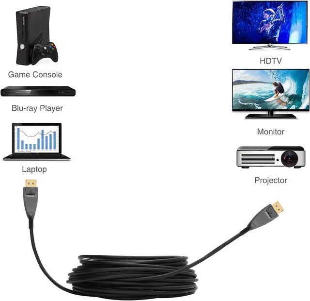 Premium quality DisplayPort 1.4 active fiber optic cable supports high resolution signals up to 8K@60Hz, HDR, HBR3.