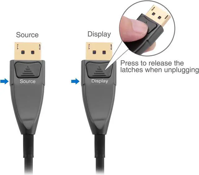 - Premium quality latching DisplayPort connector prevents accidental disconnection