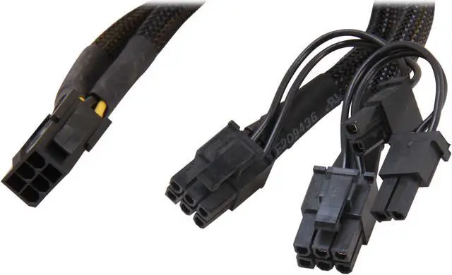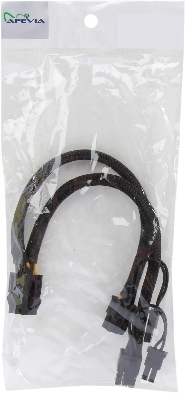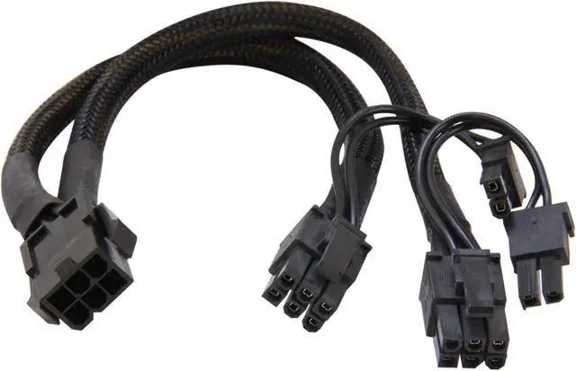 This cable converts a 6-pin PCIe power connector on your power supply into two 6+2-pin PCIe connectors. So you can connect more PCIe devices with your existing PSU. The cable is sleeved for a sleek look and smooth airflow inside your case.