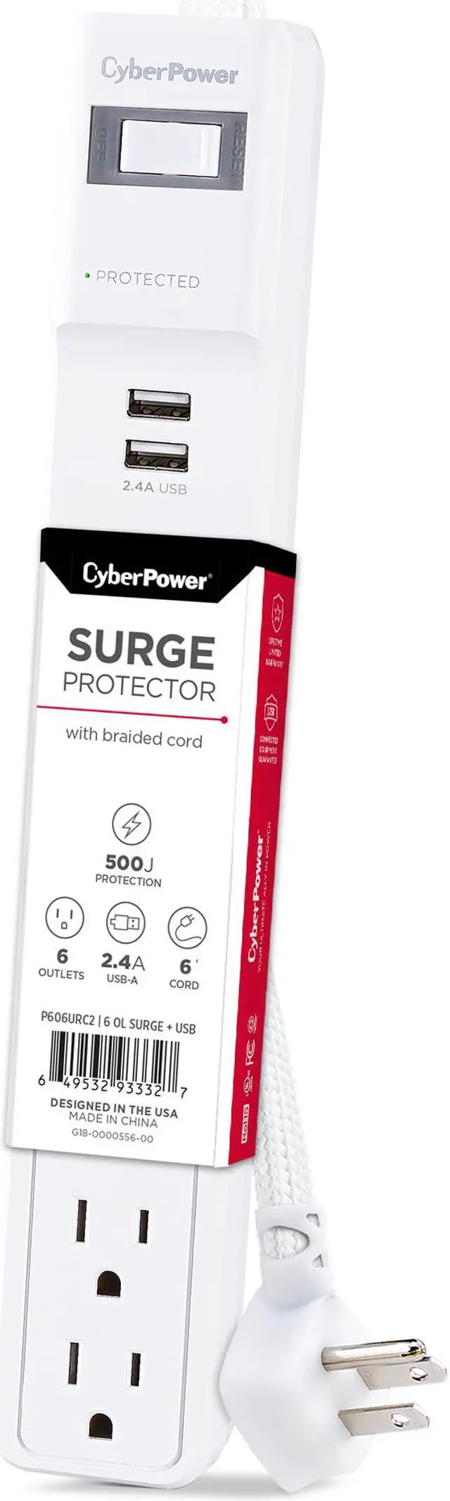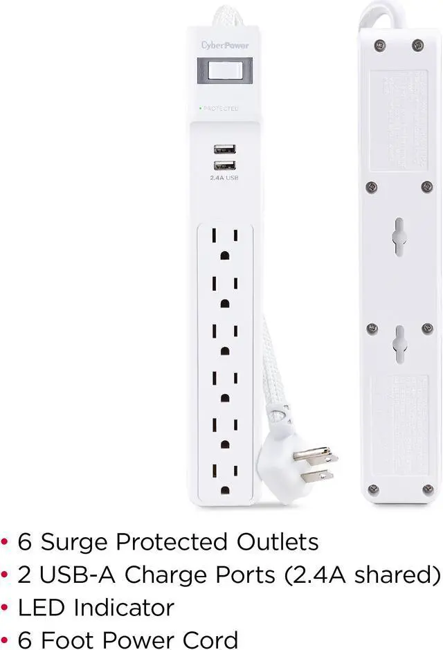 | Outlets | 6 Outlets + 2 USB |