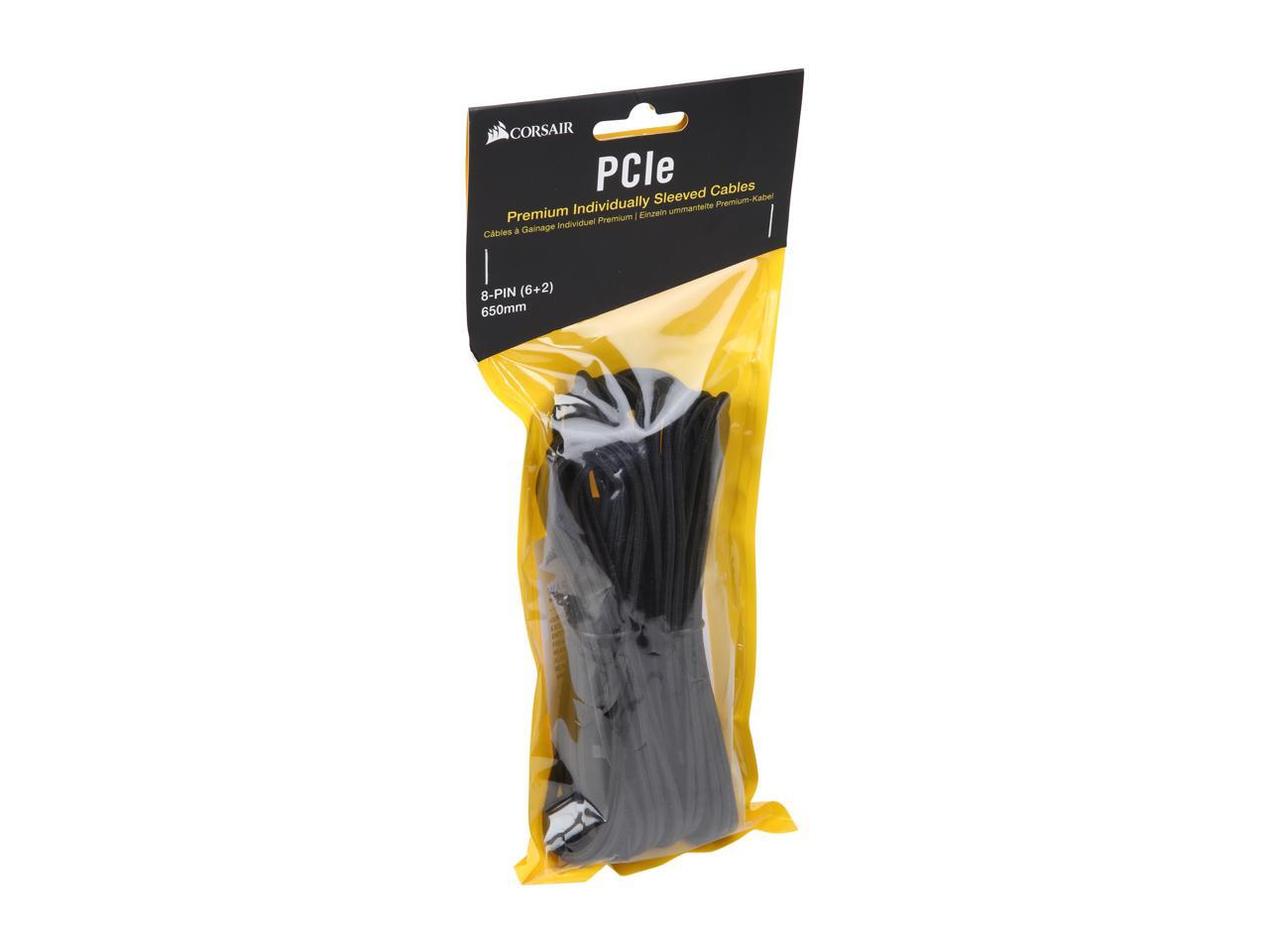 Corsair CP-8920243 2.13 ft. (0.65m) Premium Individually Sleeved PCIe (Single Connector) Cables Type 4 Gen 4 - Black