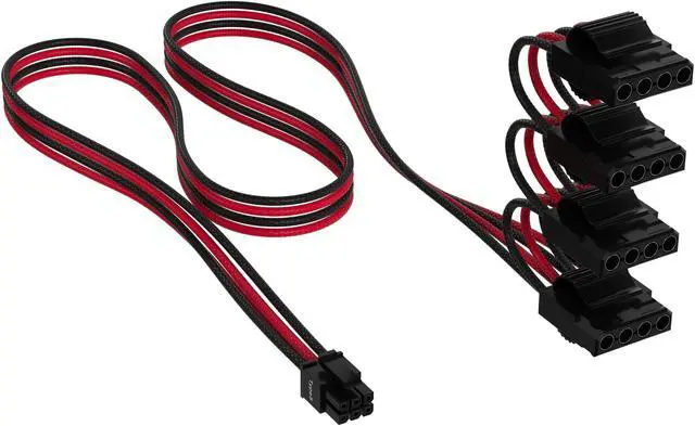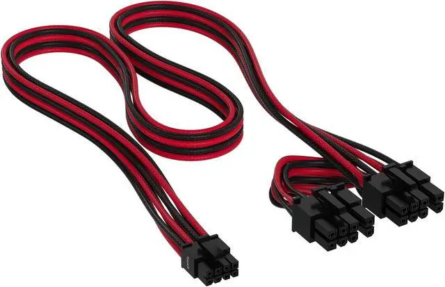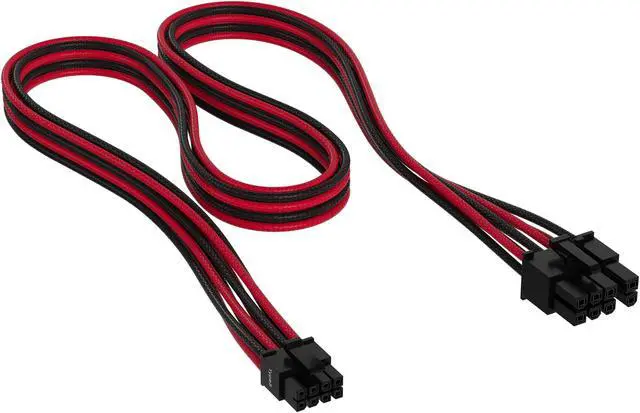 CORSAIR Premium 600W PCIe 5.0 / Gen 5 12VHPWR PSU Cable - Black/Red - Fits Type-4 PSUs via Dual 8-pin PCIe - 12+4pin Connector - Mesh Paracord Sleeving