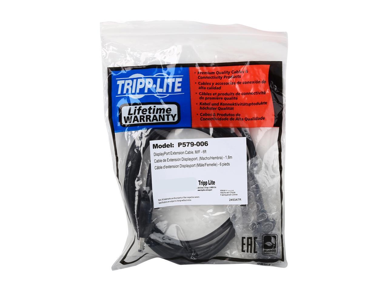 Tripp Lite P579-006 6 ft. Black Connector A DISPLAYPORT (MALE) Connector B DISPLAYPORT (FEMALE) DisplayPort Extension Cable with Latches Male to Female