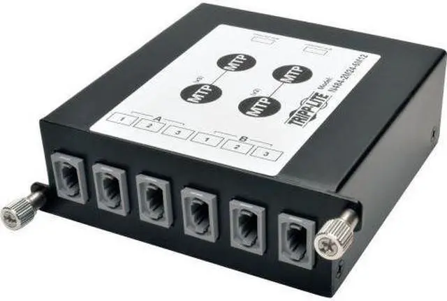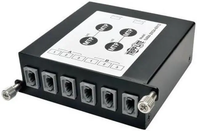 | Features | High Density Fiber Cassette for use with Tripp Lite's N484-00U and N484-01U chassis' 100/120Gb to 40Gb Breakout Cassette, with (x2) 24-Fiber MTP/MPO connections to (x6) 12-Fiber MTP/MPO connections Max insertion loss of 0.35dB falls well under the IEEE 802.3ae maximum channel loss spec of <25dB Type B adapters ( Key up to Key up ) on 12-Fiber side Type A adapters ( Key up to Key down ) on 24-Fiber side Complies with IEEE 802.3ae (10GbE) and ANSI T11.2 (Fibre Channel) requirements Installation is simple, with the cassette being easily installed or removed using screw tabs to lock or unlock it from the panel; no tools required Each cassette features factory terminated connectors that reduce the time and labor required of field connector terminations Housing made of heavy duty, 1.0mm Cold Rolled Steel Includes dust caps for unused ports