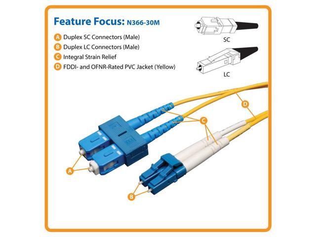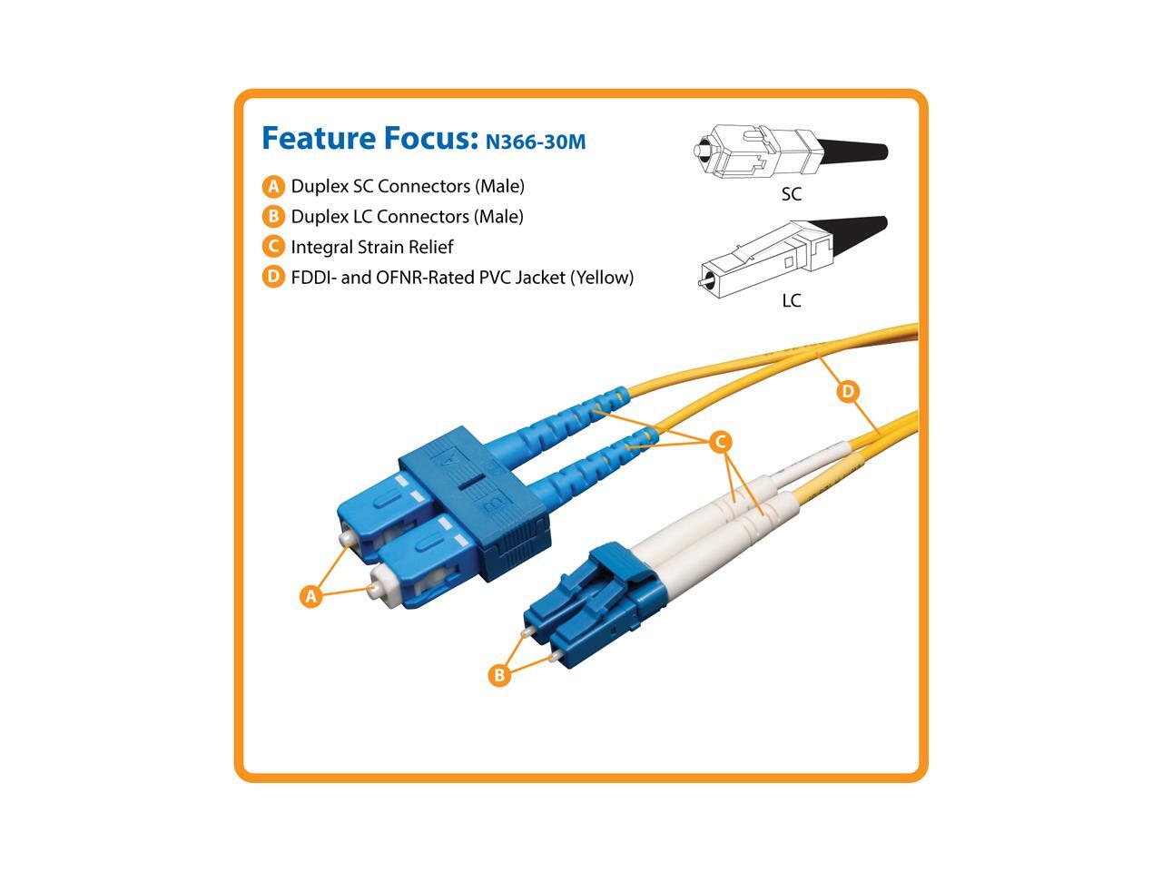 Tripp Lite N366-30M 100 ft. 30M Duplex Singlemode SSF 8.3/125 Fiber Patch Cable LC/SC 100'