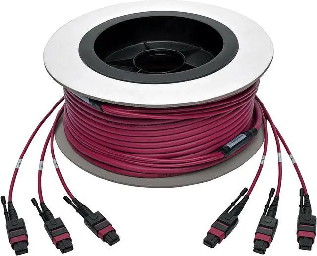 Tripp Lite MTP/MPO Multimode Base-8 Trunk Cable, 24-Strand, 40/100 GbE, 40/100GBASE-SR4, OM4 Plenum-Rated (3xF/3xF), Push/Pull Tab, Magenta, 23M (N858-23M-3X8-MG)
