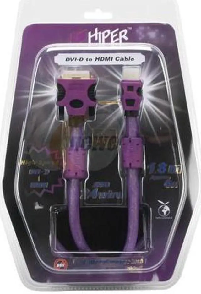 So, your computer has a DVI output but your flat panel TV only has HDMI. That's an easy fix. Hiper's 6 foot DVI-D to HDMI cable handles the signal transmission and connector change in one unit. The distinct Hiper Purple coloring will make this cable distinct.