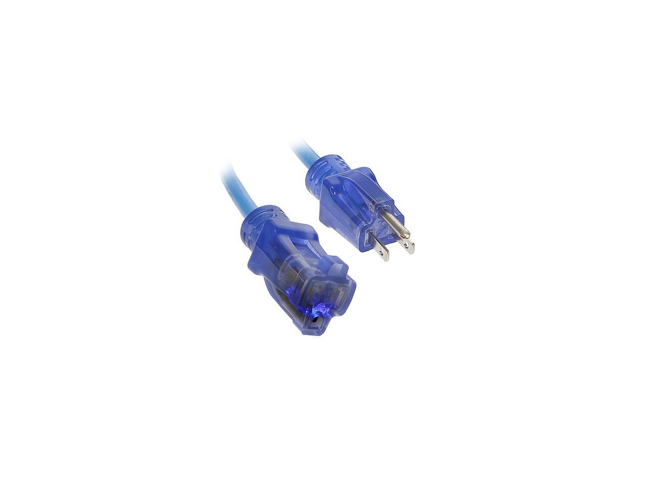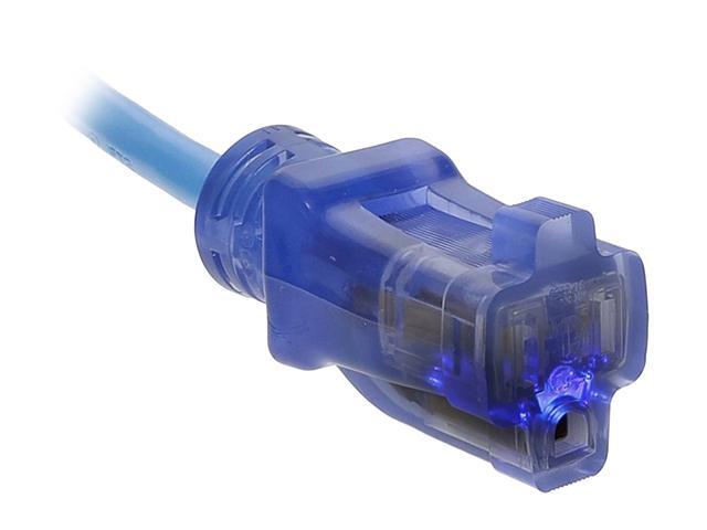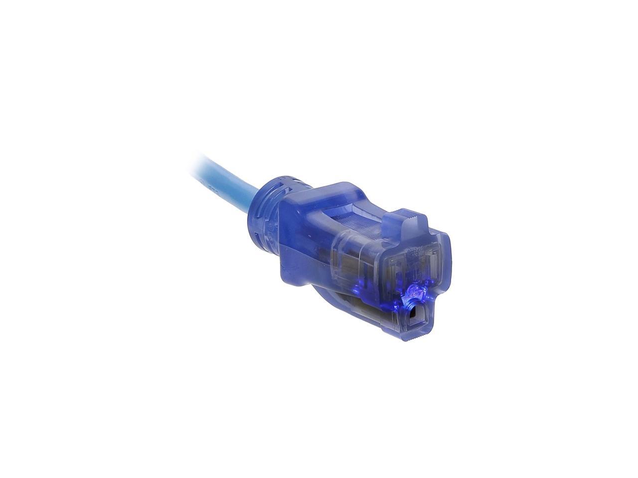 Nippon Labs 50Ft 14/3 SJTW Blue Power Extension Cord Lighted Clear Blue Plug, Water Resistant Outdoor Rated Power Extension Cable, 60POW-EXT-50BU