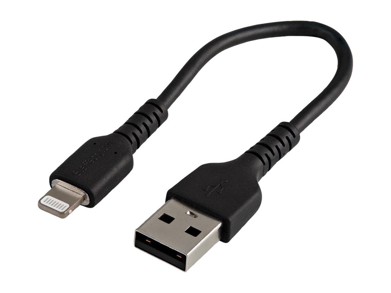 StarTech.com RUSBLTMM15CMB 15cm Durable USB A to Lightning Cable - Black USB Type A to Lightning Connector Charge & Sync Power Cord - Rugged w/Aramid Fiber - Apple MFI Certified - iPad Air iPhone 12 (RUSBLTMM15CMB)