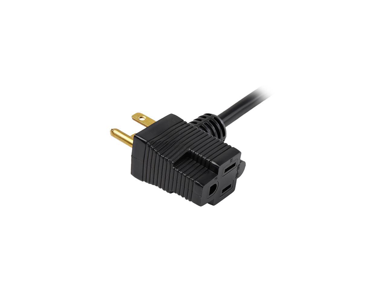 StarTech Piggyback Power Extension Cord - Nema 5-15P to 2x Nema 5-15R, 16 AWG, 125V/15A - UL Certified - 1 to 2 Outlet Saver Extension Cord