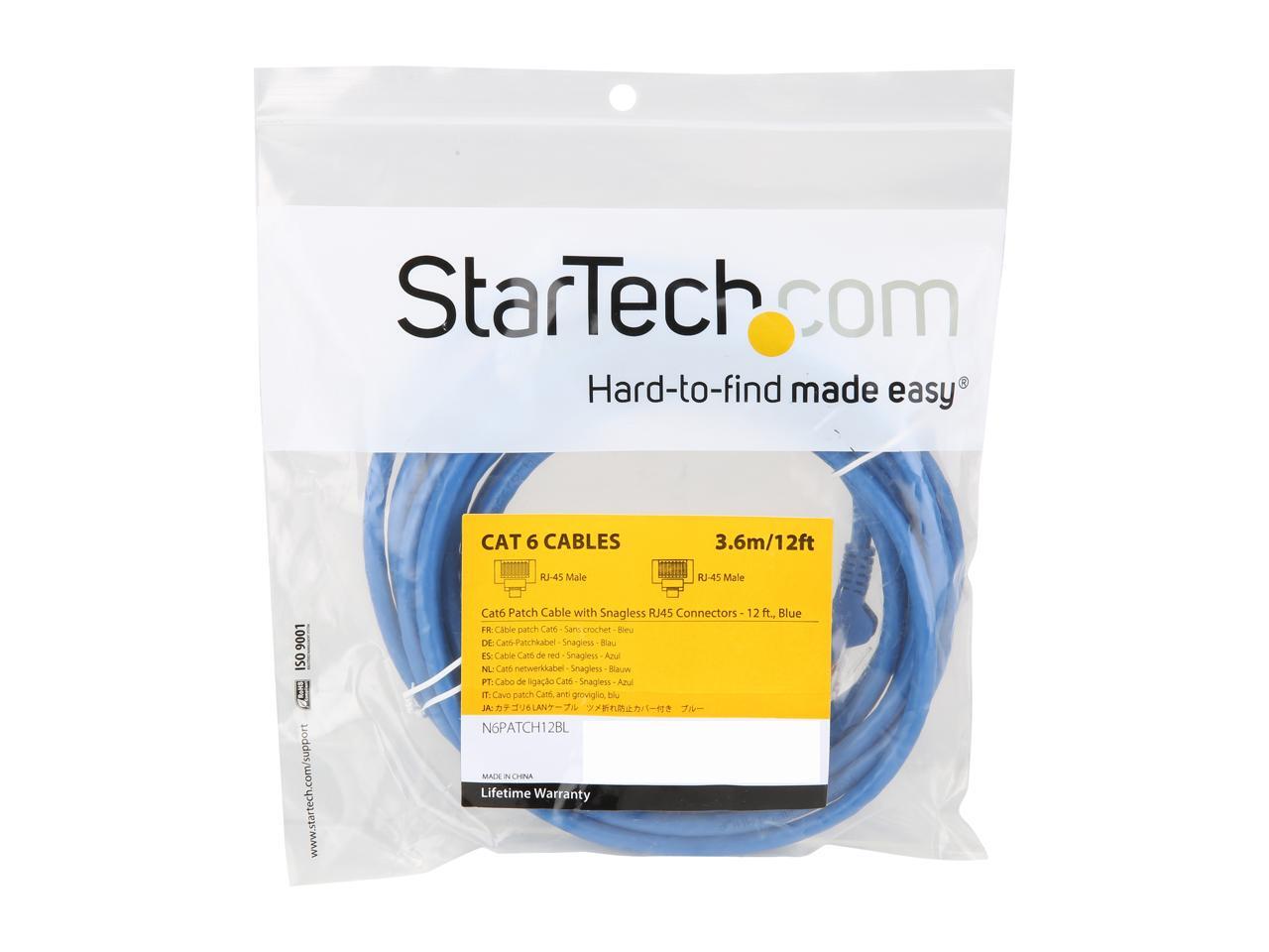 StarTech N6PATCH12BL StarTech.com Cat6 Patch Cable - 12 ft - Blue Ethernet Cable - Snagless RJ45 Cable - Ethernet Cord - Cat 6 Cable - 12ft