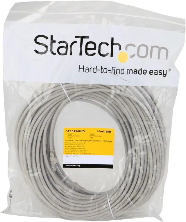 150ft Gray CAT6 Ethernet cable w/ 100% copper Multi Gigabit 1/2.5/5Gbps and 10Gbps up to 160ft|Fluke patch cord tested to comply w/ ANSI/TIA-568-2.D Category 6