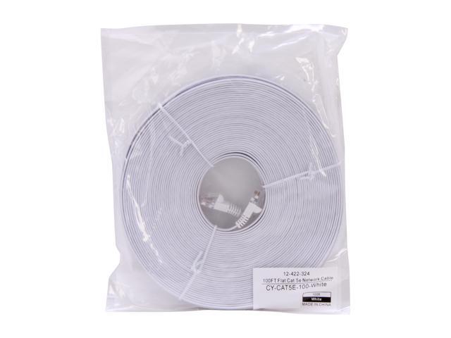 Coboc CY-CAT5E-100-White 100ft. 30AWG Cat 5E White Color 350MHz UTP Flat Ethernet Stranded Copper Patch cord /Molded Network lan Cable