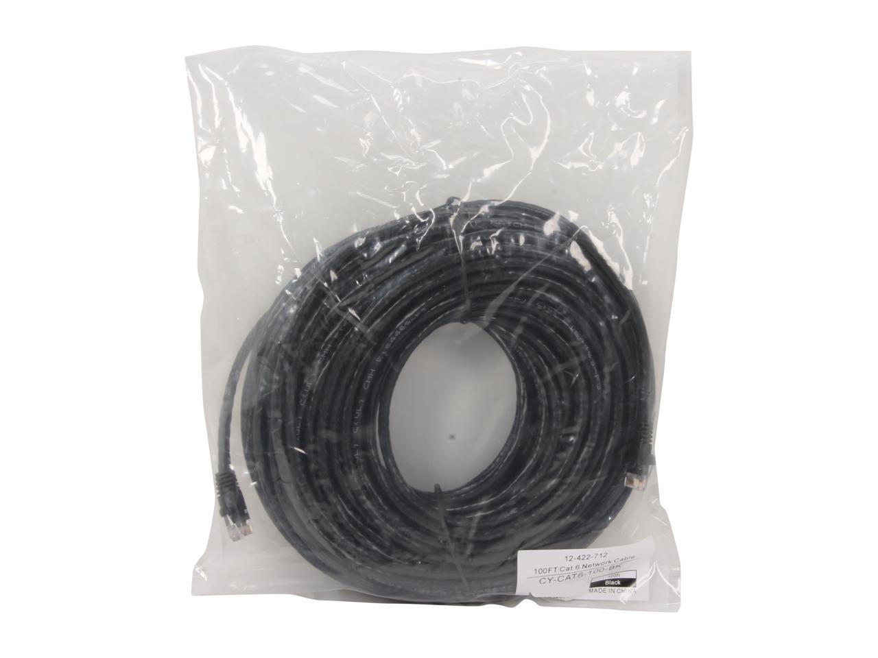 Coboc CY-CAT6-100-BK 100ft. 24AWG Snagless Cat 6 Black Color 550MHz UTP Ethernet Stranded Copper Patch cord /Molded Network lan Cable