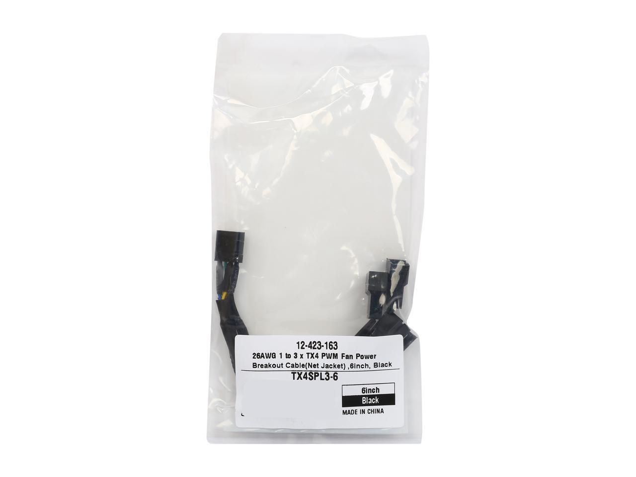 Coboc TX4SPL3-6 6.1 in. Sleeved 6 inch 1 to Three(3) x 4-pin TX4 PWM Multi-Fan Power Splitter Cable(Net Jacket) Female to Male