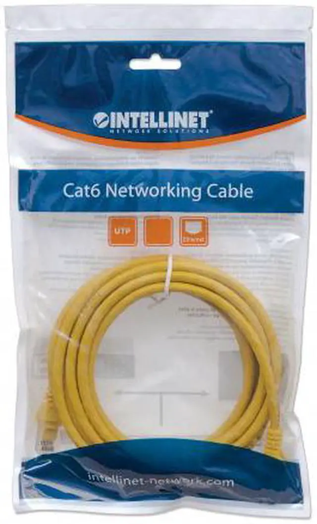Enjoy clear and secure data transmissions with the Intellinet Solutions Cat6 Patch Cable. This network cable enables a convenient and reliable connection from one network device, such as a switch, modem or router, to another or to the infrastructure at large through a patch panel, keystone jack or wall outlet. Designed to meet the appropriate TIA/EIA standards and suitable for use in 10/100/1000BASE-T networks, the Intellinet Solutions Cat6 Patch Cable also offers a rugged PVC sheath and molded strain relief to help reduce cable damage and assure full data transfer rates, error-free transmissions and maximum conductivity.
