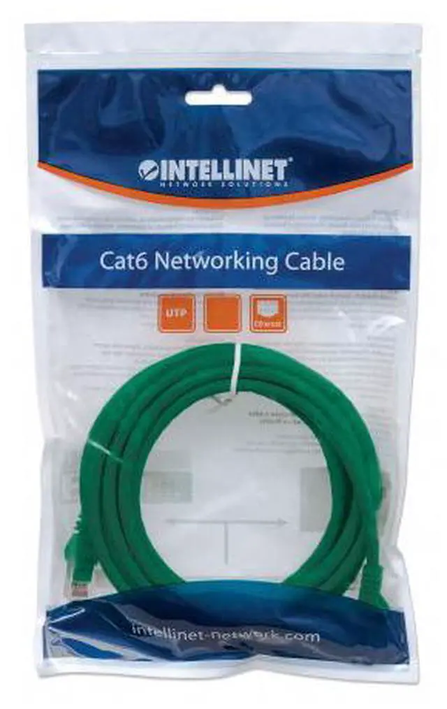 Intellinet Network Cable, Cat6, UTP, RJ45 Male / RJ45 Male, 0.3 m (1 ft.), Green