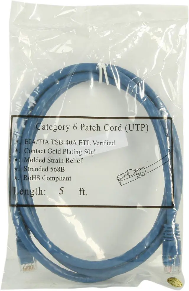 Kaybles 5ft CAT6 UPT 5 ft Injection Molded Boot Patch Cables in Blue Color 5 feet - OEM