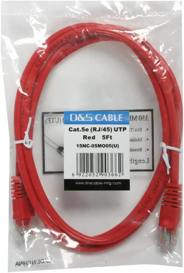 D&S Cable 15NC-05MO05(U) 5 ft. Cat 5E Red Network Cable