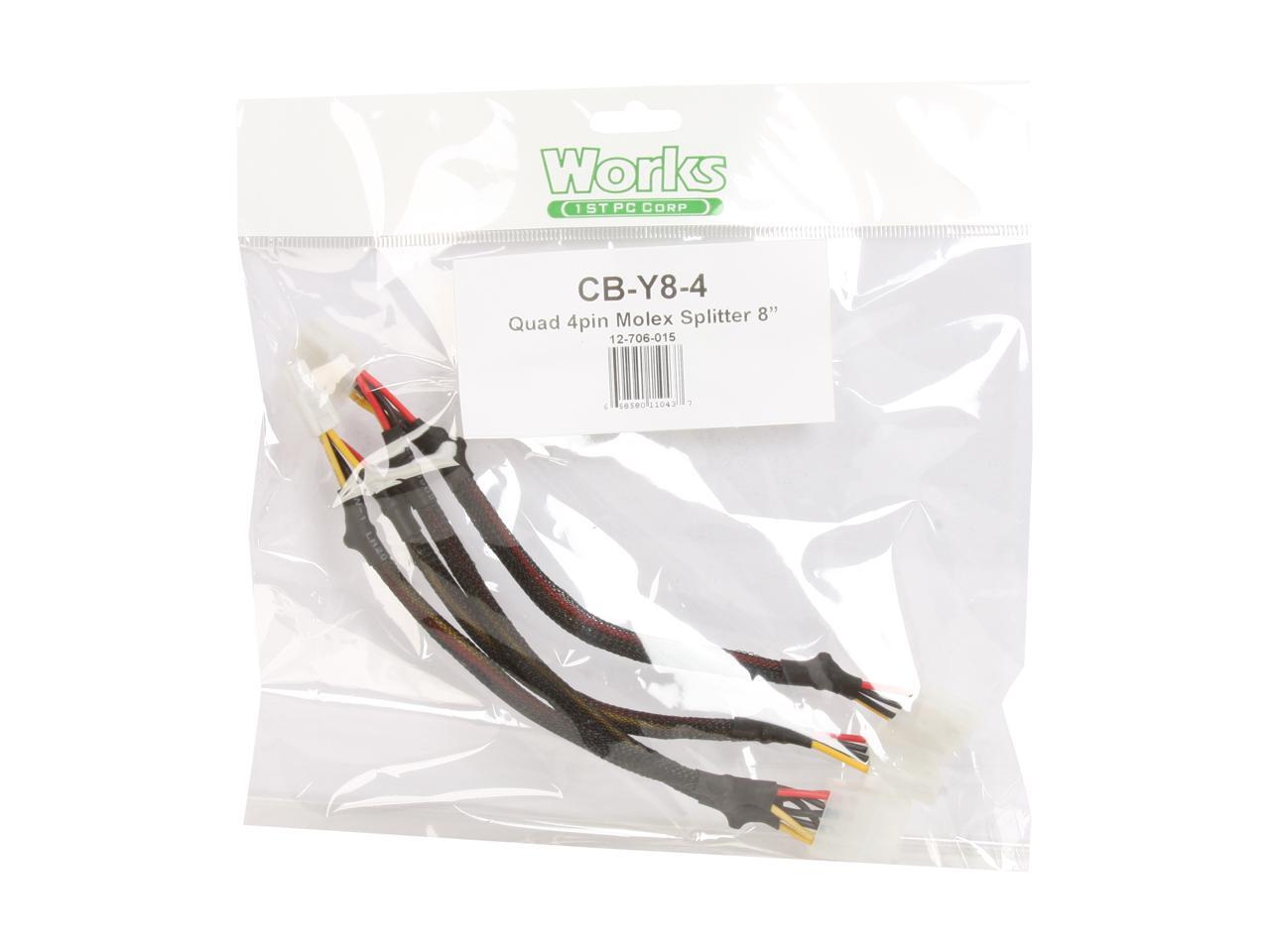 1ST PC CORP. CB-Y8-4 8 in. Quad 4pin molex splitters - 4pin male molex to 4x 4pin female molex - Sleeved