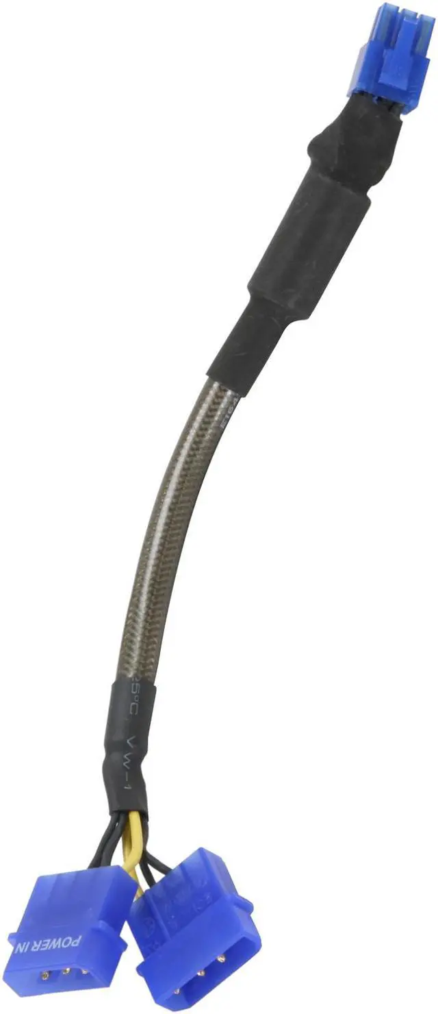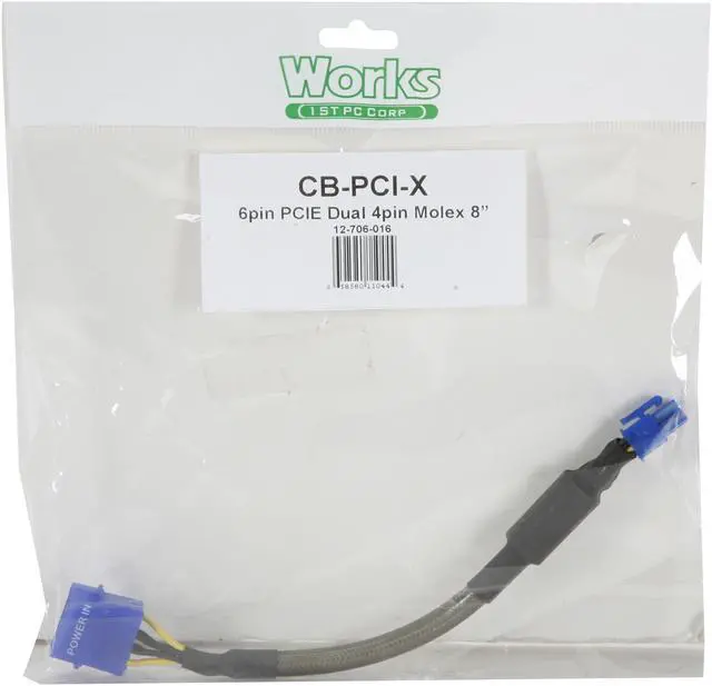 | Features | This cable adapter converts 2 molex 4-pin male to a PCI-Express 6-pin female power connector for graphic cards. 9-inch long and sleeved. |