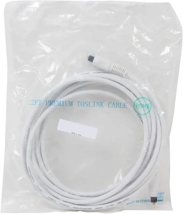 Nippon Labs White 12ft Pro A/V Premium Toslink Digital Optical SPDIF Audio Cable Male/ Male in White Color 12 ft Model PT-12W 12 feet