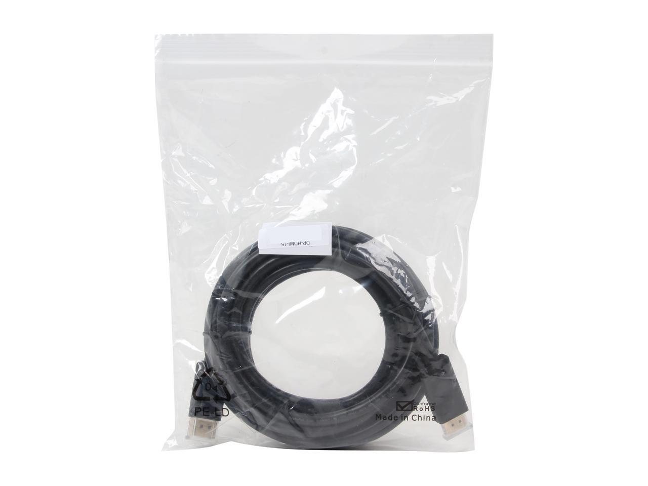 Nippon Labs DP-HDMI-15 15 ft. DP DisplayPort to HDMI Converter Cable Supporting VR / 3D / 4K, Black - DP to HDMI Adapter - (M/M) - OEM