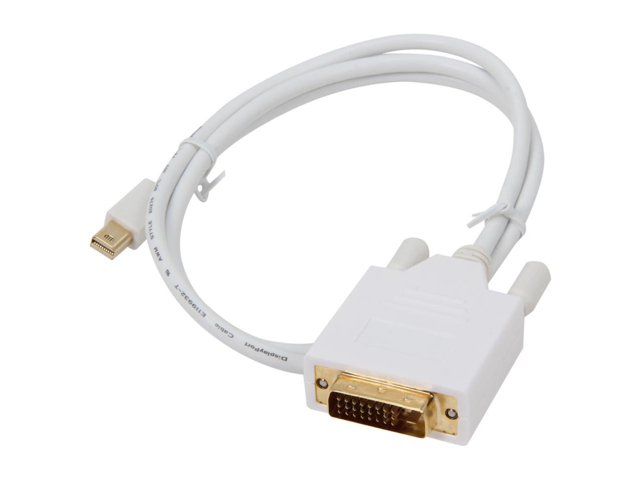 Nippon Labs MINIDP-DVI-3 3 ft. Mini DP DisplayPort Male to DVI Male Adapter Cable, White - OEM
