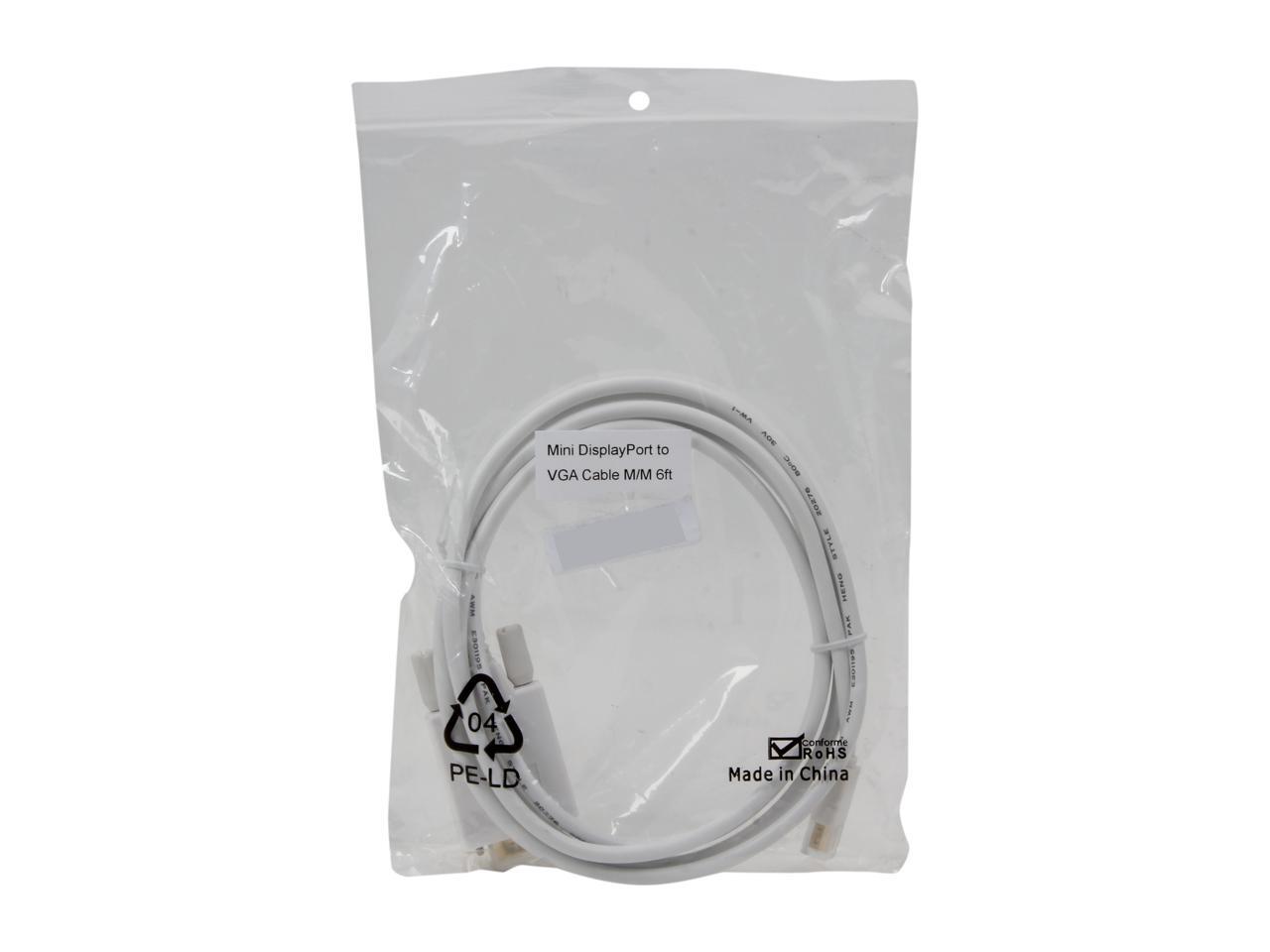 Nippon Labs MINIDP-VGA-6 6 ft. Mini DP DisplayPort Male to VGA Male Adapter Cable, White - OEM