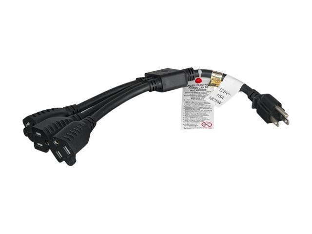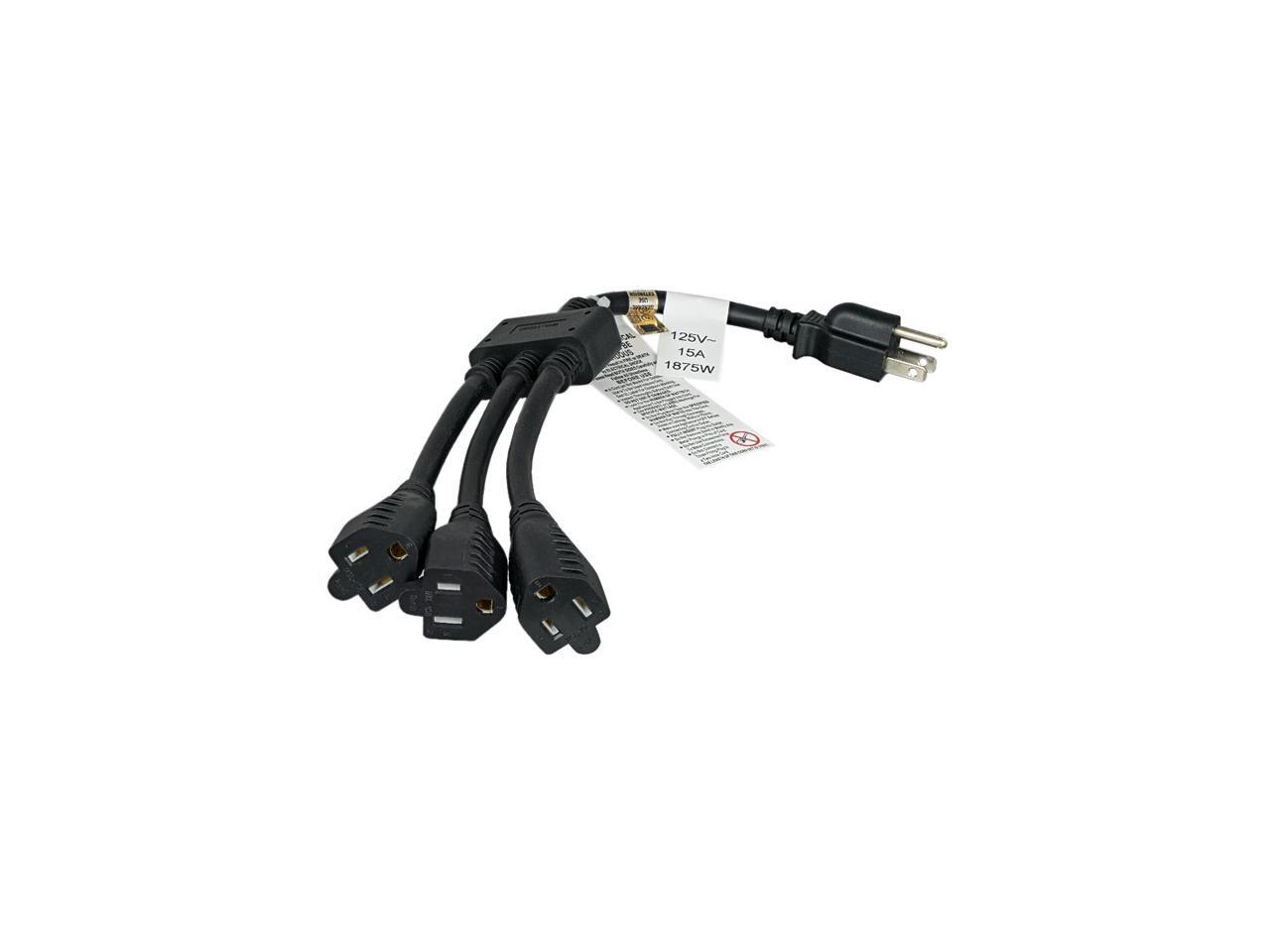 Nippon Labs 14 AWG 1-to-3 Power Cord Splitter (NEMA 5-15P to NEMA 5-15R X3),SJT, Black Color, 18 inch Power Cord, 30P-10W1-145PR3Y-18