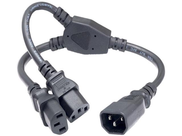 Nippon Labs 16AWG 1-to-2 Power Cord Extension (IEC-60320-C14 to IEC-60320-C13 x 2), SJT, Black Color, 14 inch Power Cord Splitter C14 To C13 X 2, 30POW-10W1-161413Y-14