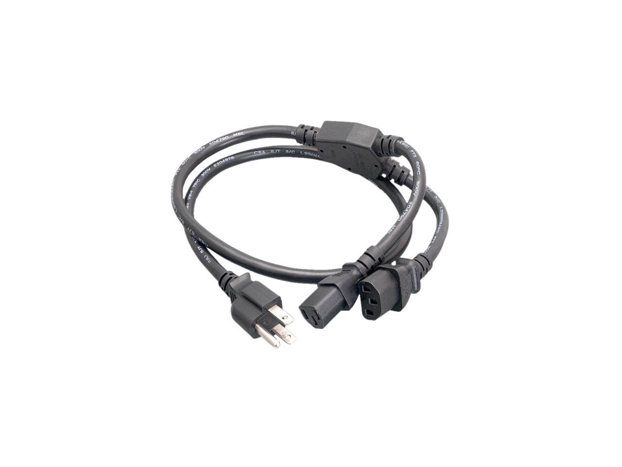 Nippon Labs 18 AWG 1-to-2 Power Cord Splitter (NEMA 5-15P to IEC-60320-C13 x 2), SJT, Black Color, 3 ft. NEMA 5-15P To C13 Splitter Power Cord