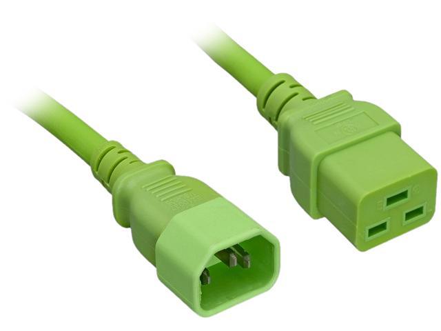 Nippon Labs 14 AWG C14 / C19 Power Cord, IEC-60320-C14 to IEC-60320-C19, SJT, 15A/250V, 3 ft. Green Power Cable