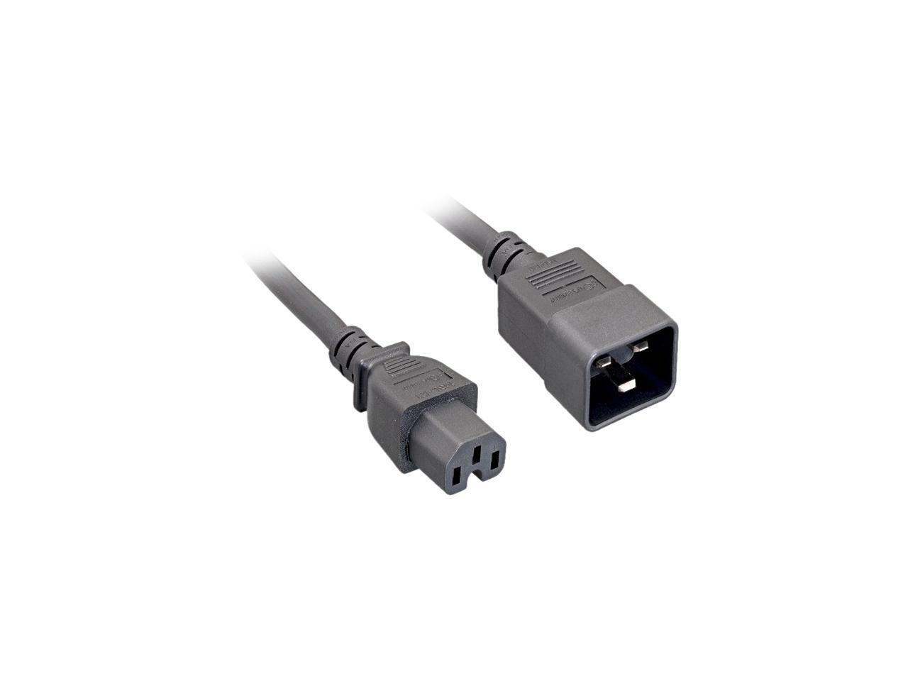 Nippon Labs 14 AWG. C15 / C20 Power Cord, SJT, 15A, 300V, 8 ft. IEC-60320-C15 to IEC-60320-C20 Black Power Cable