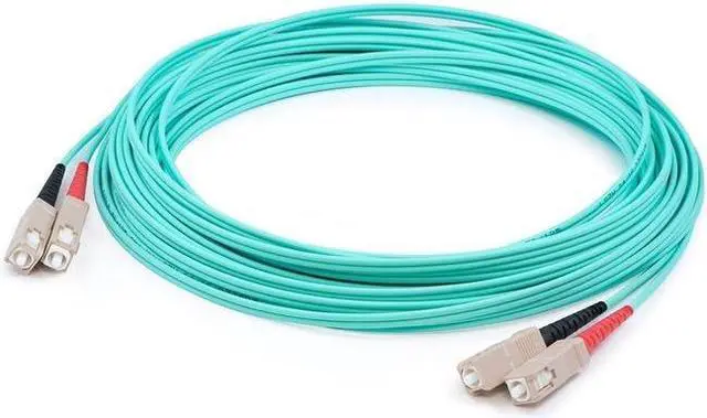 AddOn's 10M Laser-Optimized Muliti-Mode fiber (LOMM) Duplex LC/LC Aqua Patch Cable is a laser-optimized multimode fiber (LOMMF) cable which offers backward compatibility with existing 50/125 equipment as well as providing the performance overhead needed to support both 10 gigabit applications and laser light sources. This fiber-optic cable provides the fire protection needed to run within walls and air plenums eliminating the need for conduit. The low-smoke Zero-Halogen jacket protects from toxic and corrosive gases in badly ventilated spaces and other areas where it is most crucial. In addition, it provides 10 gigabit transfers up to 300 meters utilizing an 850nm VCSEL source. Optical Multimode 4 (OM4) fiber supports 2000 MHz/km EMB at 850nm. This Patch Cable is recommended for connections between fibre patch panels, hubs, switches, media converters and routers, etc. Furthermore, this caple provides higher speeds and increased bandwidth, compared to conventional twisted-pair copper cable.