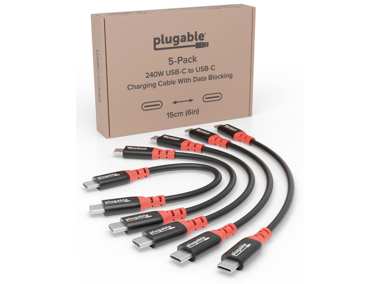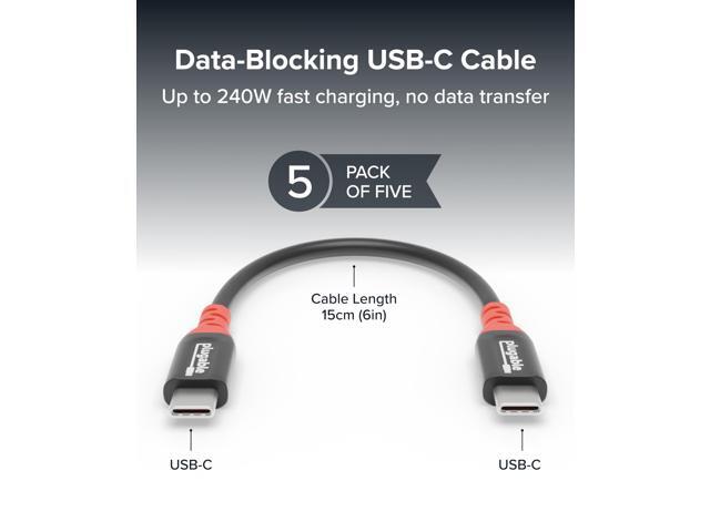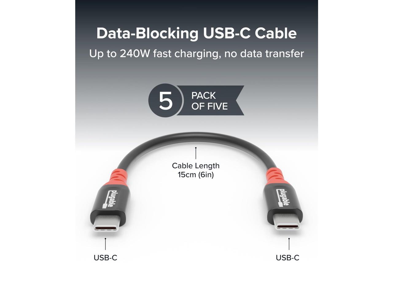 Plugable USB-C Cables, Data Blocker Charge Only, 240W (6 inch, Pack of 5)