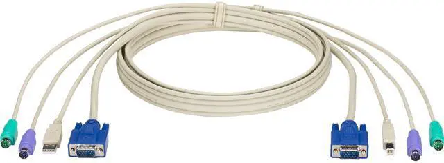 | Specifications | This KVM CPU Cable can be used to connect a VGA and PS/2 or USB computer to a KVM Switch. This is a hybrid cable which supports the VGA, USB, and PS/2 interfaces all in one. |