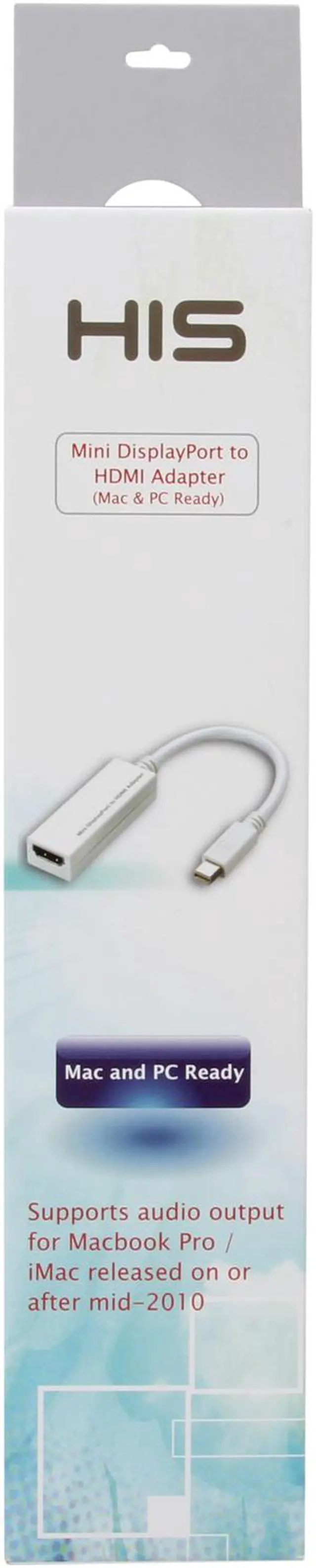 | Features | The Mini DisplayPort to HDMI Adapter enable you to connect any HDMI interface embedded device (Monitor, Projector...) with a Mini DisplayPort interface (Desktop, Laptop) and no need to purchase any Mini DisplayPort embedded terminal device. * Supports audio output for Macbook Pro / iMac released on or after mid-2010. No extra drivers need when it plugs Support Plug & Play for easy use Mini DP to HDMI with resolution till 1920x1200 2 channel Audio function. |