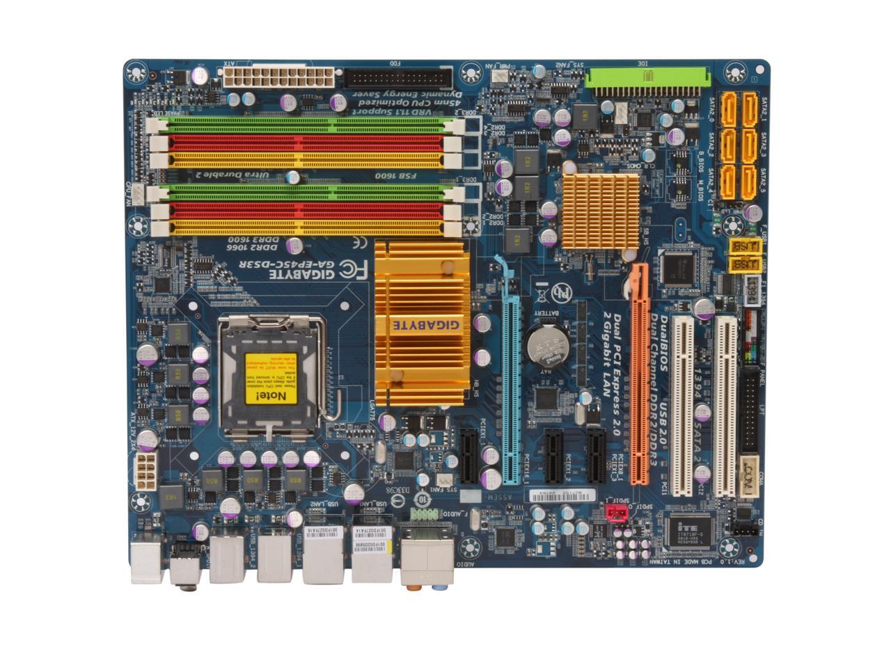 Intel P45 Express Chipset for Intel LGA 775 CPUBased on the Intel P45 Express chipset, the GIGABYTE GA-EP45C-DS3R supports Intel LGA 775 (Socket T) processors including the Core 2 Extreme, Core 2 Quad, Core 2 Duo and Pentium D series as well as the next generation Intel 45nm processors.