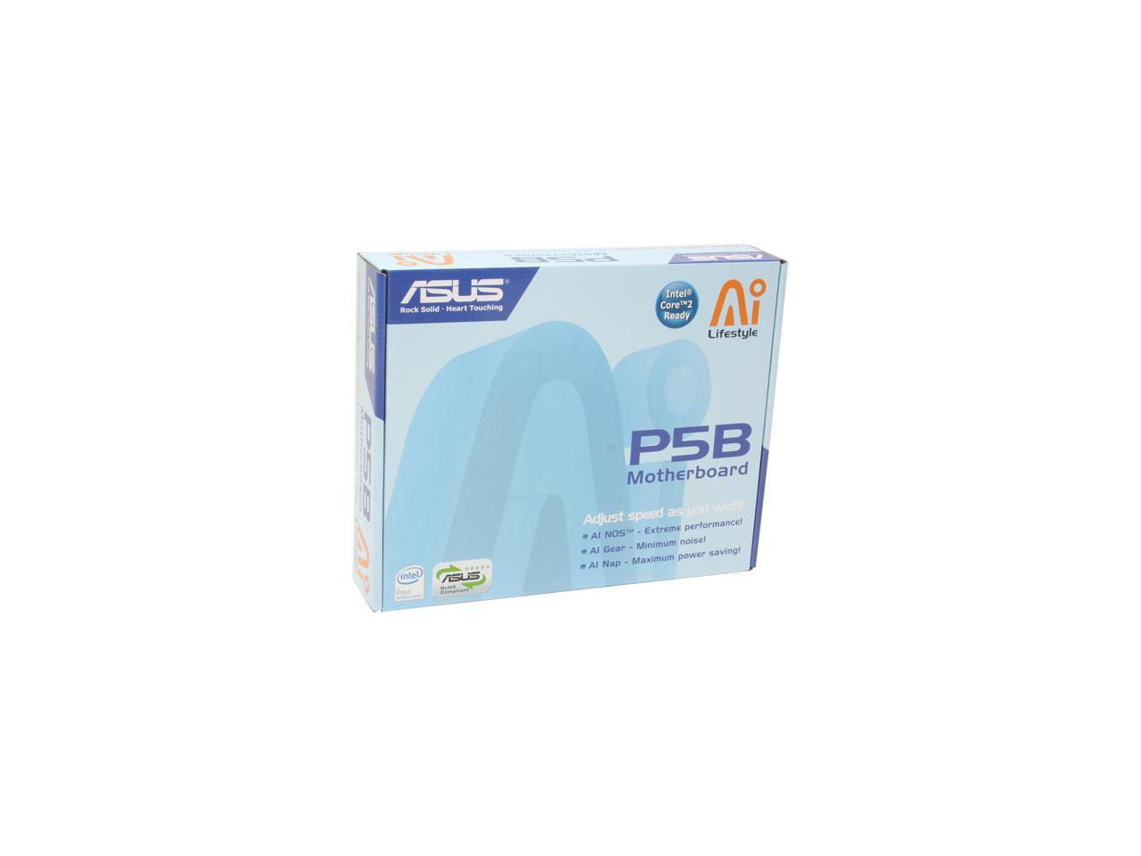 Unleash the raw power of Intel's all-new energy-efficient Core 2 processors with the ASUS P5B motherboard featuring the Intel P965 chipset with unprecedented support for up to 8 GB dual-channel DDR2 800/667/533 memory with Fast Memory Access technology to deliver unparalleled system performance. Part of the ASUS Ai Life series motherboards, the ASUS P5B provides 6 SATA connections, PCIe-based Gigabit LAN and onboard 8-channel HD Audio to satisfy your storage, networking and multimedia demands.