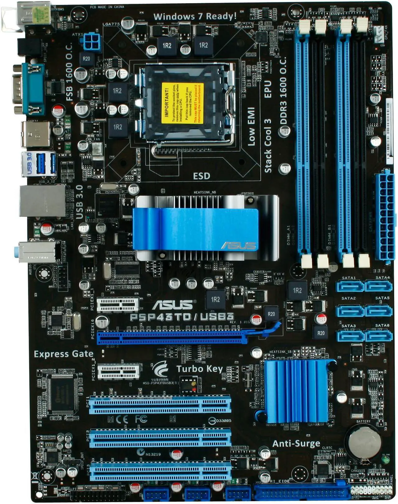 Intel P43 Express Chipset for Intel LGA 775 CPUBased on the Intel P43 Express chipset, the Asus P5P43TD/USB3 supports Intel LGA 775 (Socket T) processors including the Core 2 Extreme, Core 2 Quad, Core 2 Duo and Pentium D series as well as the next generation Intel 45nm processors.