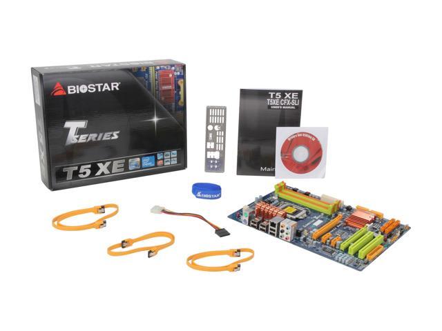| Package Contents | BIOSTAR T5 XE Motherboard 3 x SATA Cable 1 x SATA Power Cable 1 x I/O Shield 1 x CD Driver 1 x User Manual |