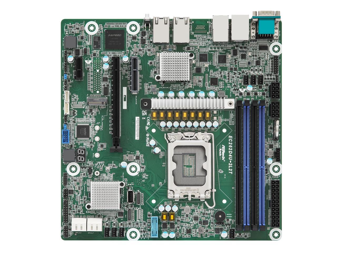 ASRock rack EC262D4U-2L2T Micro-ATX Server Motherboard, Intel® Xeon® 6300-series, Xeon® E-2400 series, and Pentium® Gold G7400/G7400T processors