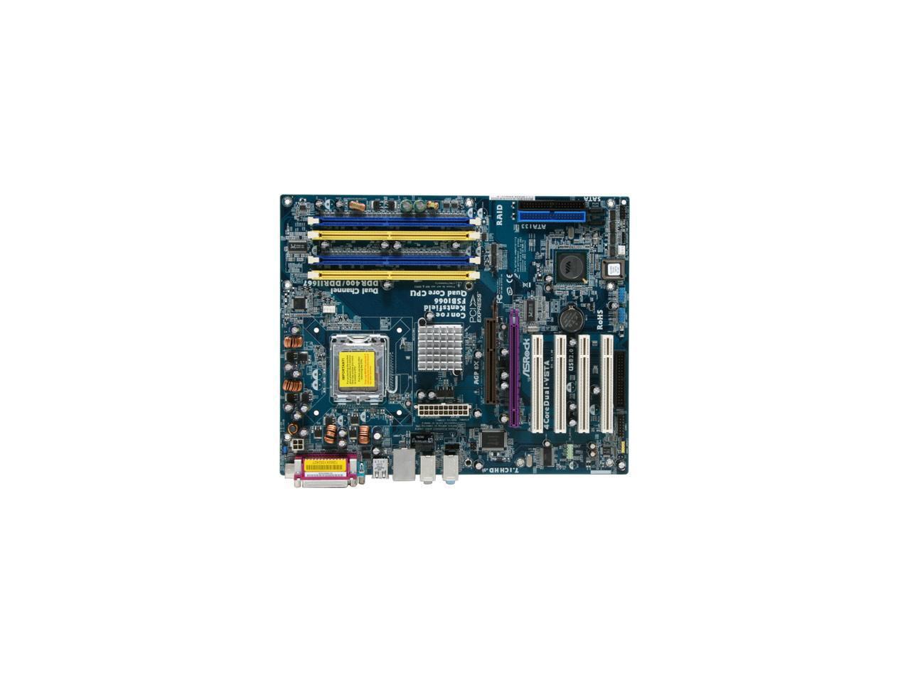 Pros: This is a great mobo, this is exactly what I was looking for. I wanted to move on out of my athlon xp 3200+ but didnt have sata drives, ddr2 or pcie. This board allowed me to do conroe 2 duo with ddr1 and AGP. And for 60 dollars I can't complain much!!!