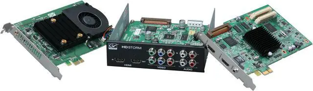 | Features | The ultimate Grass Valley bundle include the HDSTORM Plus with breakout box, the EDIUS 5 professional non-linear editing software and the FIRECODER BLU hardware encoder card for faster than realtime H.264 encoding. HDSTORM Hardware: HDSTORM empowers you with constantly synched, full-resolution preview of effects and content directly from the EDIUS timeline. The power of having the Canopus HQ codec on-board means you won? be restricted by CPU speeds or workstation limitations when ingesting or creating high-quality Canopus HQ AVI files for editing. Keeping the compression processing separate from your CPU brings new reliability and system performance to the editing and effects creation environment. Working as a perfect combination of software and hardware, HDSTORM can handle any mix of HD and SD video content; unlimited video, audio, title, and graphics layers; and any combination of real-time effects. HDSTORM Bay: The bay not only features additional connectors for HDMI devices, but also input and output connectors for analog HD/SD component, S-Video, composite, and unbalanced audio; this helps those still working in analog to make the transition to digital and HD production. FIRECODER Blu: Based on the PCI Express form factor, our FIRECODER Blu board provides accelerated encoding of Blu-ray compatible video sourced from any number of video applications, including our own EDIUS nonlinear editing software. You can then output its results directly to a Blu-ray disc or to a Blu-ray compatible file for additional authoring. The FIRECODER Blu board also lets you transcode between H.264 and MPEG-2 formats; it supports 1080i and 720p as well as native 24p Blu-ray formats. It supports up- and downconversion of standard- and high-definition (SD and HD) sources. And it encodes HD source materials 2X faster than real time—and SD source materials 4-5X faster than real time. |