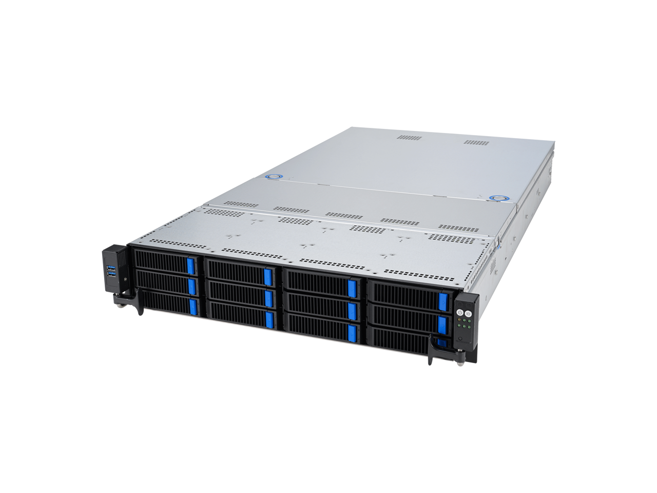 ASUS RS521A-E12-RS12U-20TW1G Server Barebone, AMD EPYC™ 9005 single-processor 2U server that supports up to 24 DIMM, 12 NVMe, five PCIe® 5.0 slots, two M.2, OCP 3.0, two dual-slot GPUs