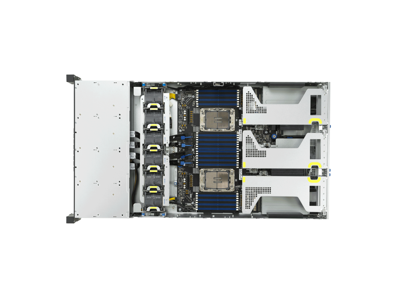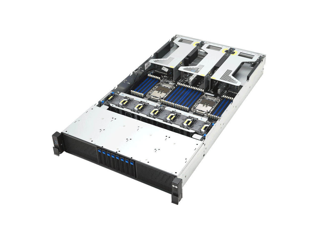 ASUS RS720-E12-RS8G-32KW10G 2U Rackmount AI GPU Server | Dual Intel Xeon 6 Scalable | 32x DDR5 ECC | 8x Hot-Swap Tri-Mode NVMe | Up to 3 Dual-Slot GPUs | Dual 10GbE | PCIe 5.0 | 3200W 80PLUS Titanium Redundant PSU