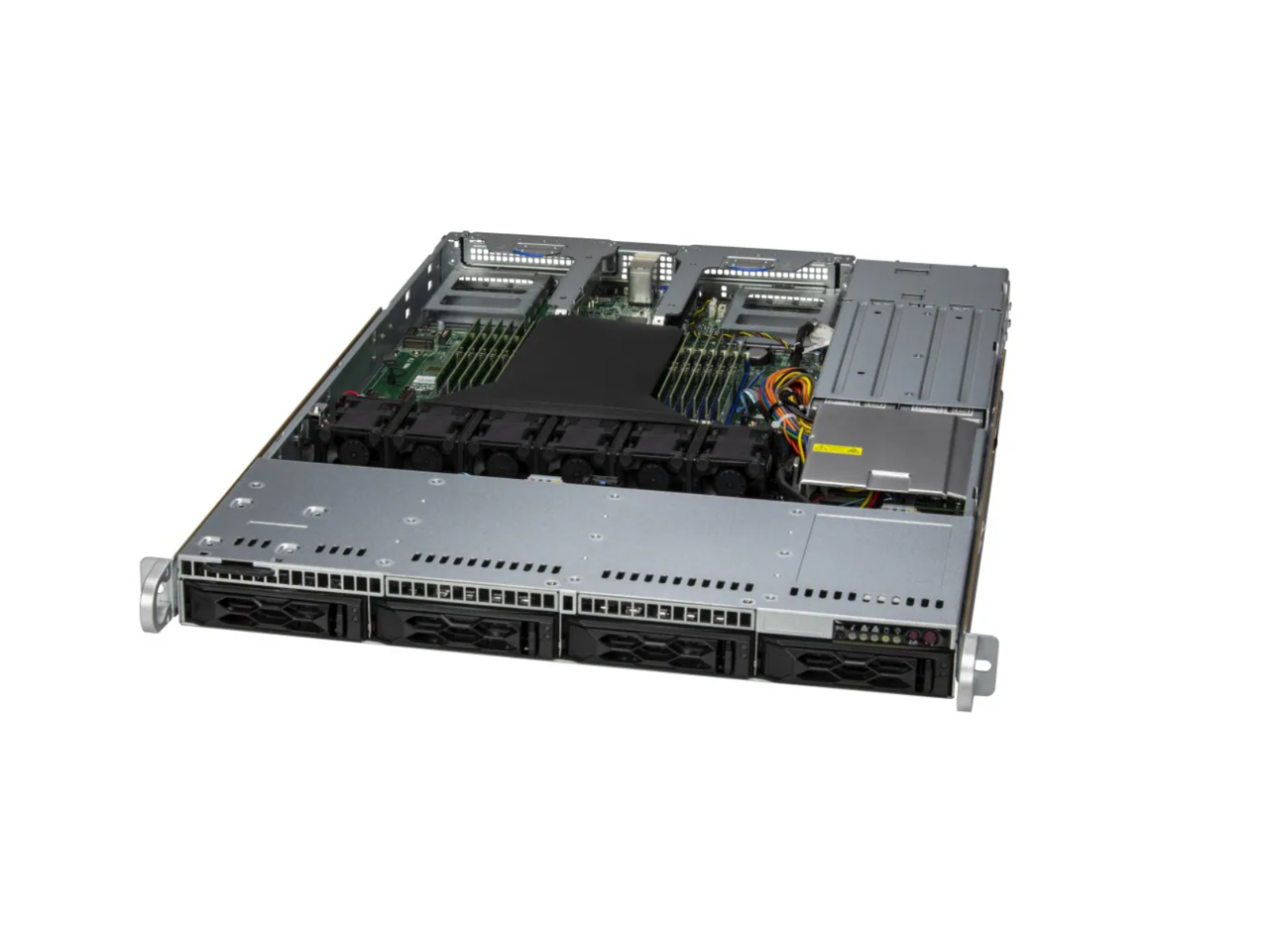 CloudDC A+ Server AS -1015CS-TNR, 1U CloudDC with 4 hot-swap 3.5" NVMe/SAS/SATA bays and 2 PCIe 5.0 x16 slots + 2 AIOM slots