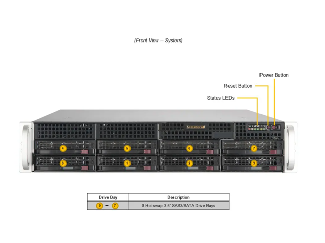 Supermicro Mainstream A+ Server AS -2015A-TR, 2U UP Mainstream with up to 8 hot-swap 3.5" SAS/SATA bays, 2 PCIe 5.0 x16 slots (can be configured as 16/NA or 8/8) and 1 PCIe 4.0 x4 slot